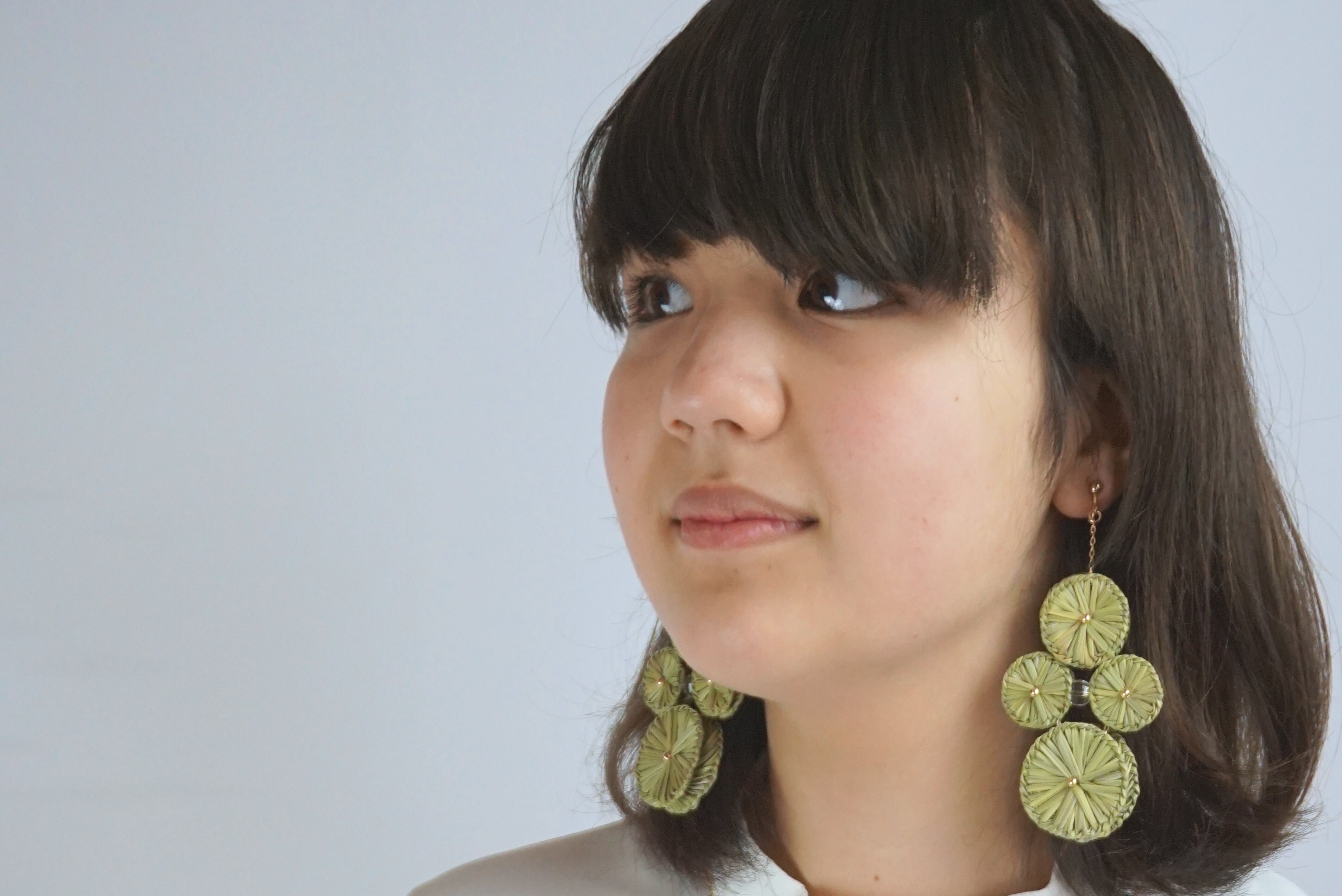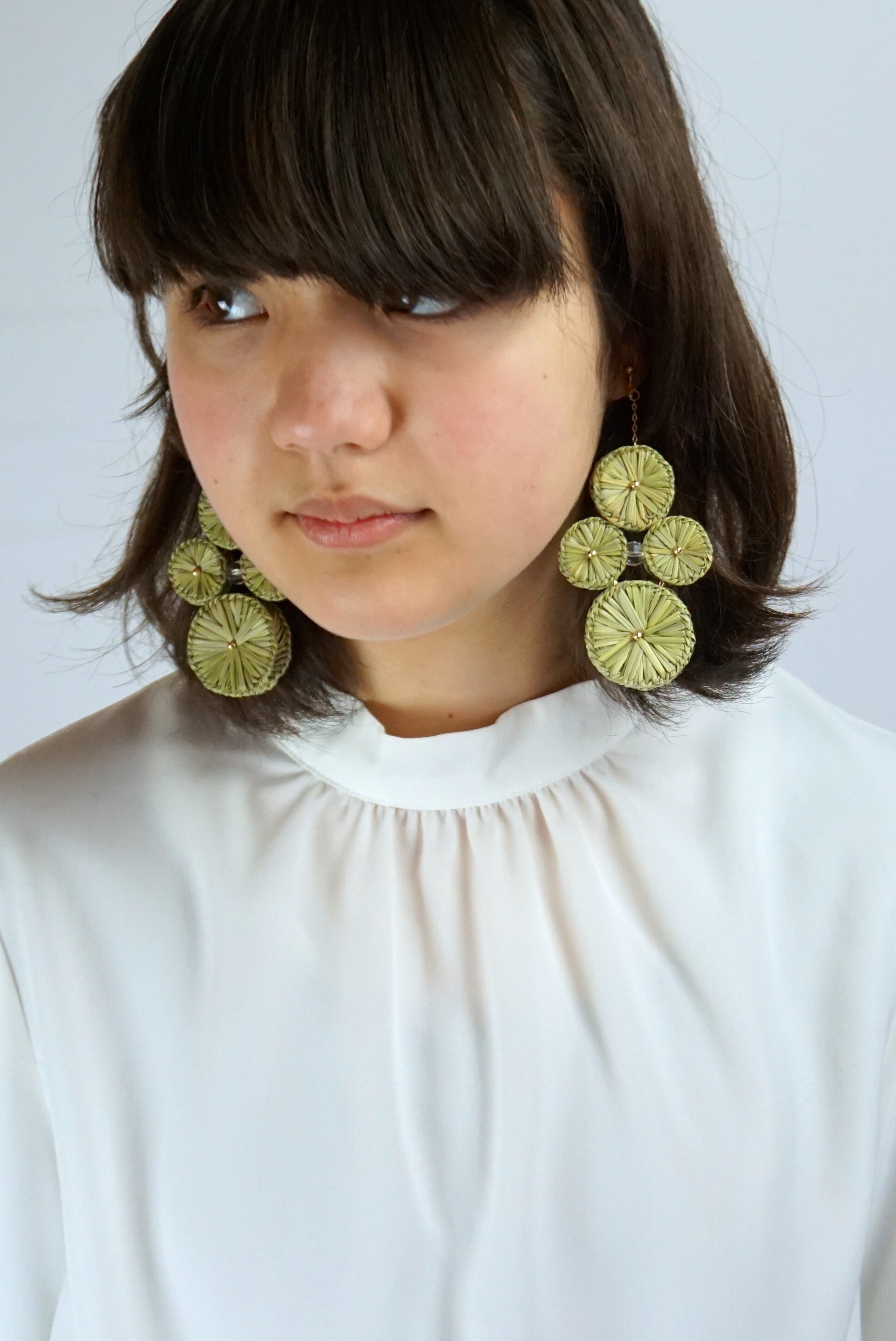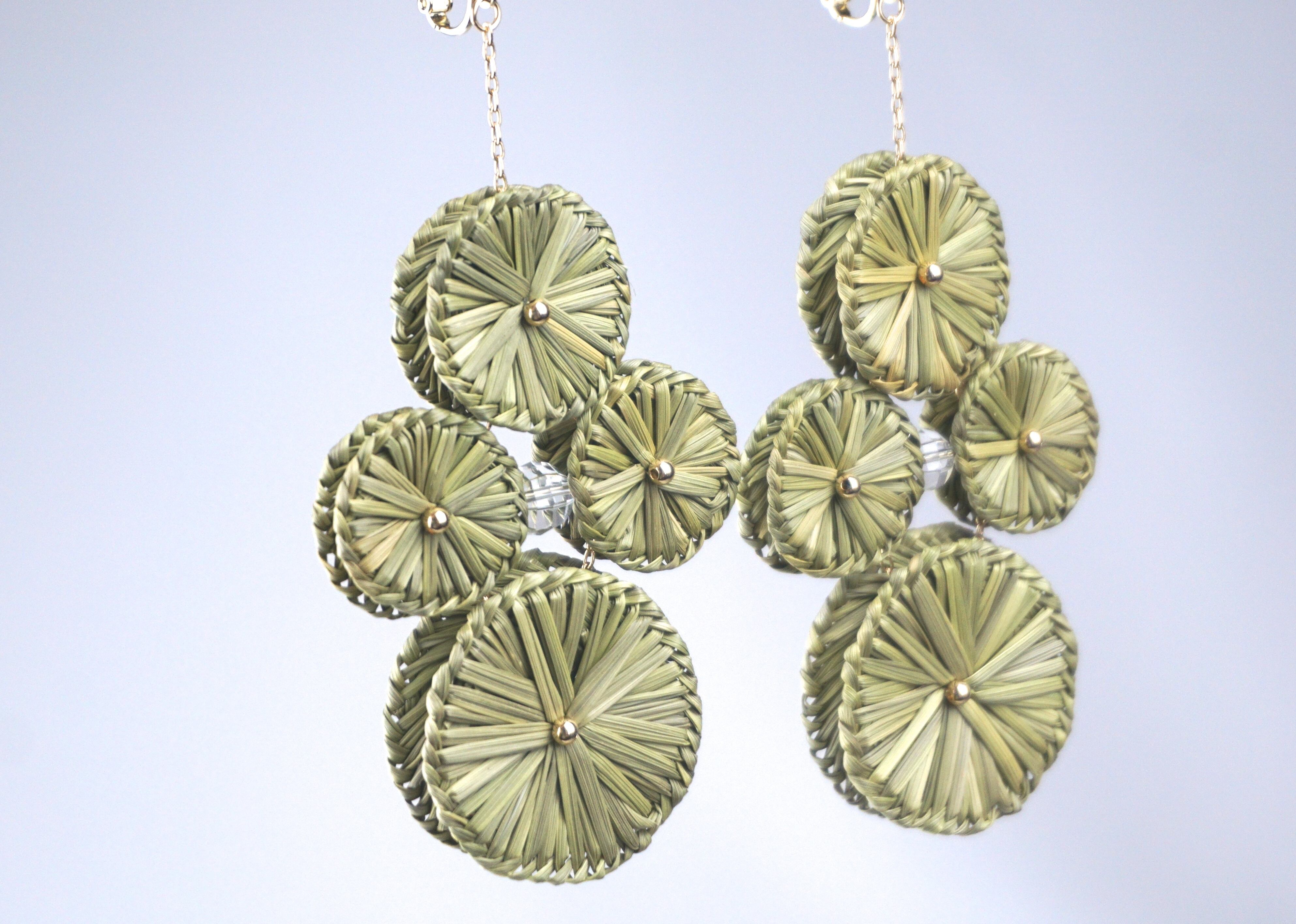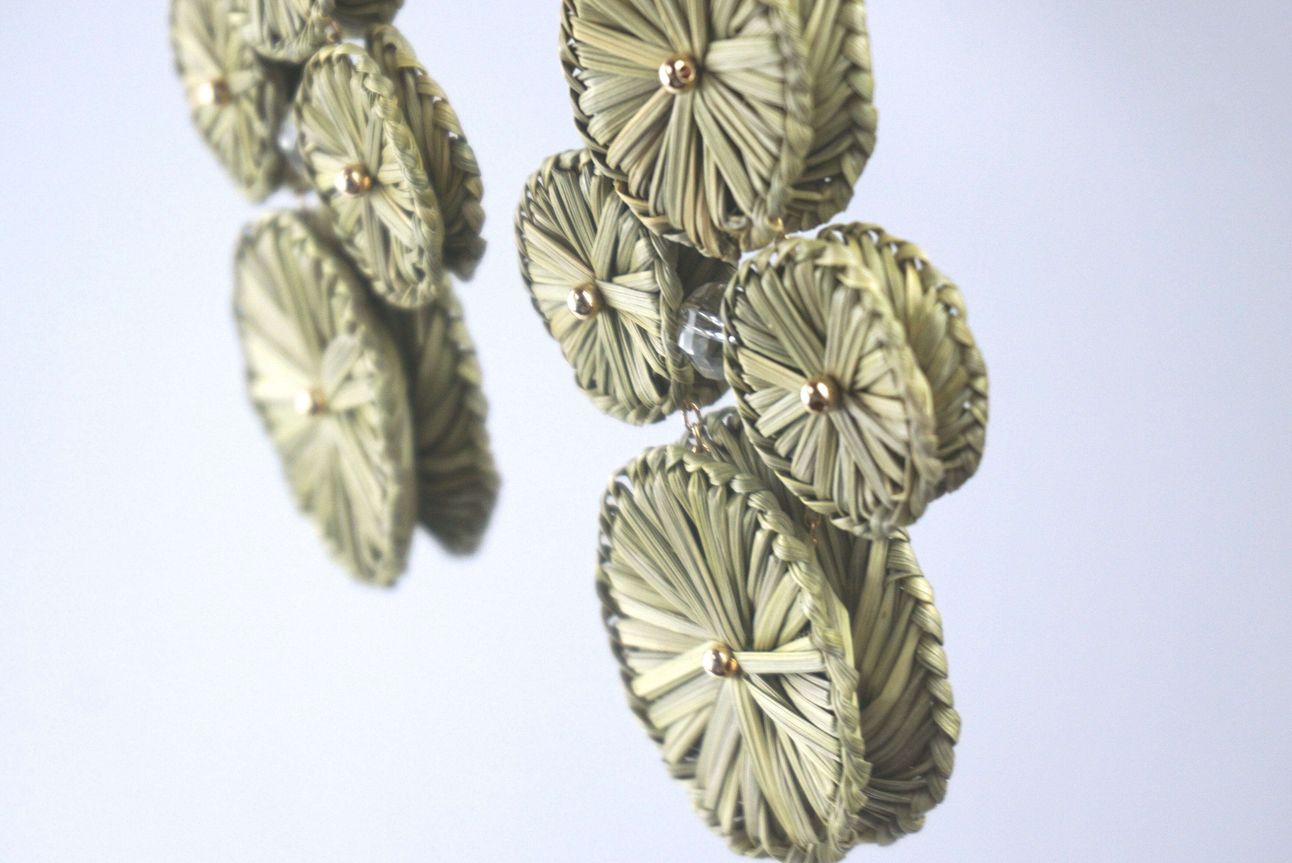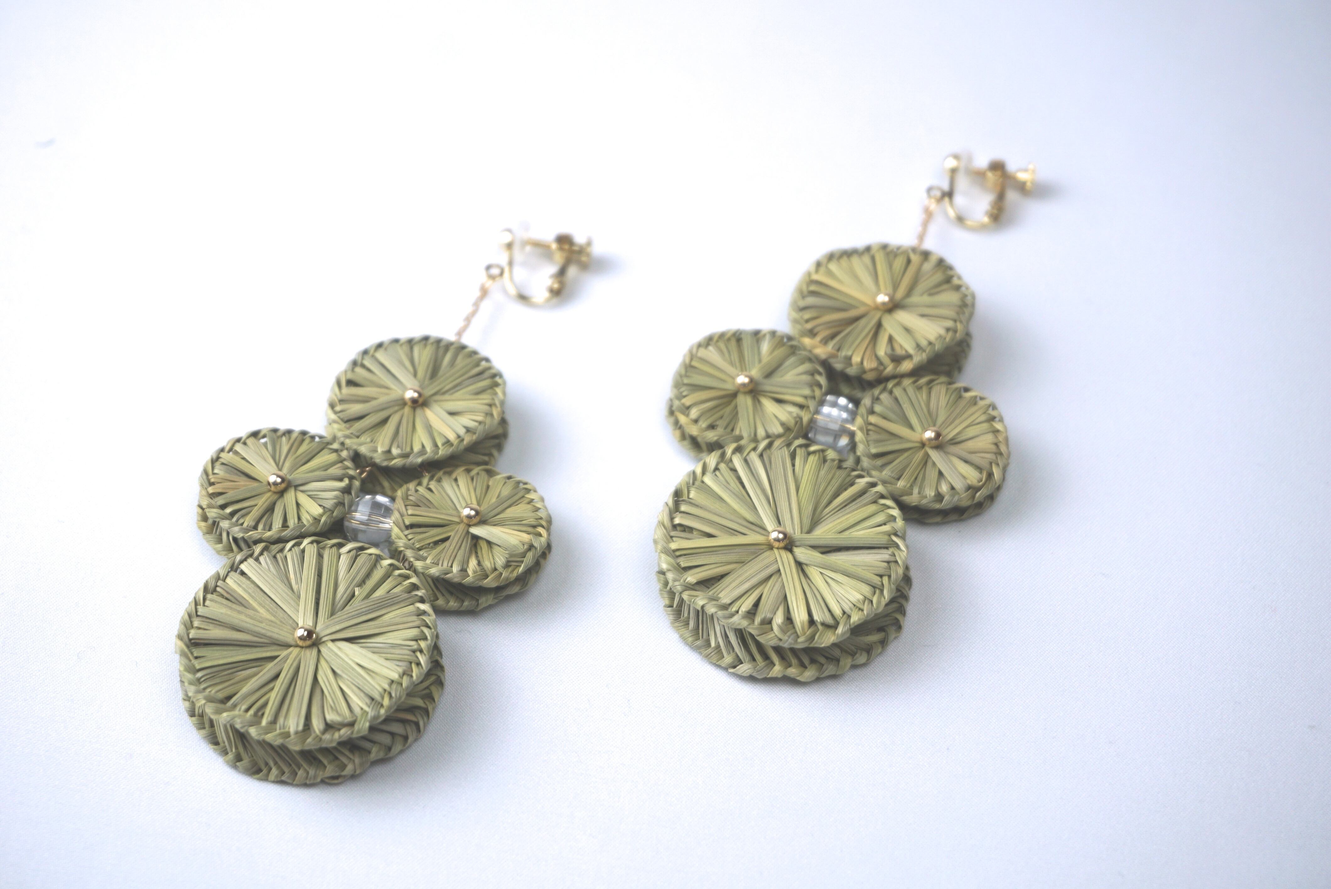 素材:シバクサ(チカラシバ)・クリスタル・14KGF ※イヤリング金具は真鍮。シリコン付き。